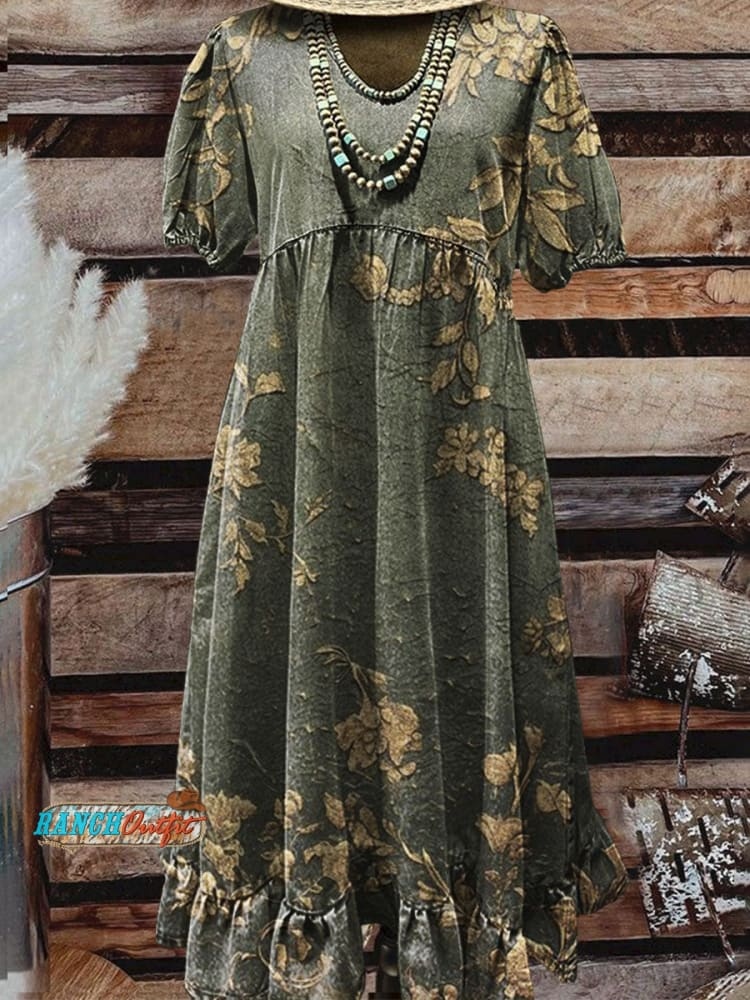 Vintage Floral Art Print Print Crew Neck Dress