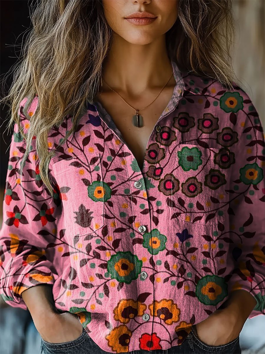 Women's Floral Art Print Casual Long Sleeve Comfortable Cotton Shirt