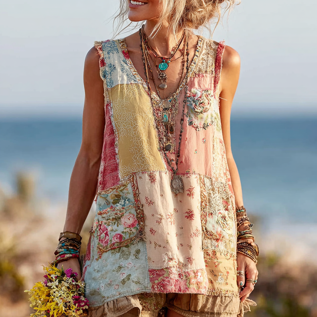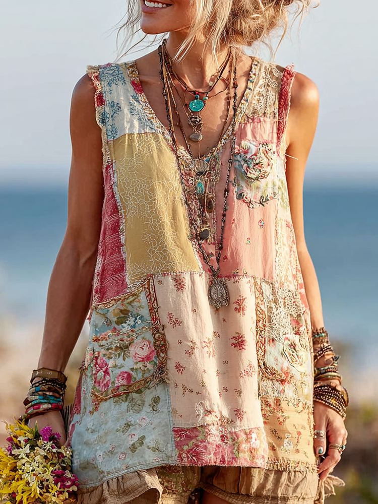 Women's Floral Patchwork Art Sleeveless Vest