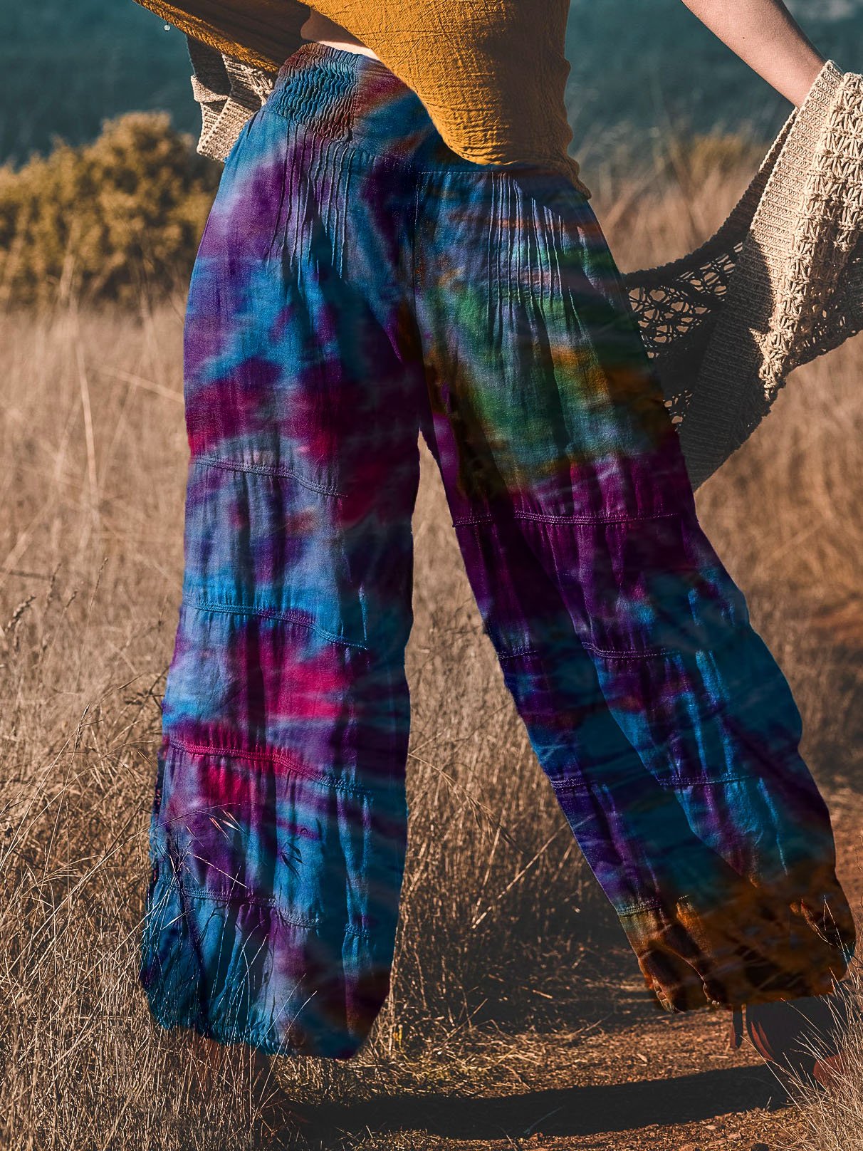 Women's Retro Bohemian Hippie Tie Dye Print Pants