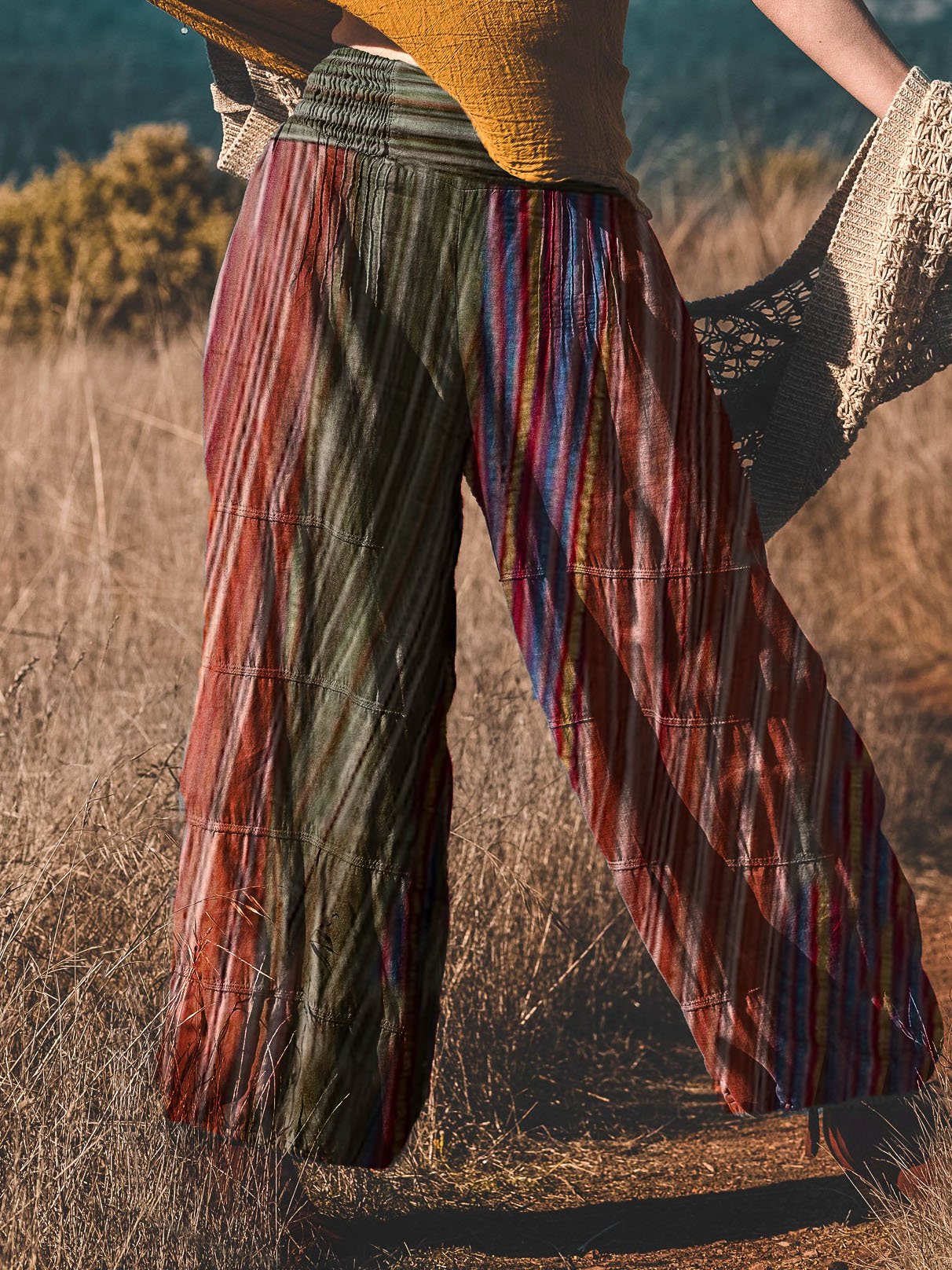 Women's Retro Hippie Striped Print Pants