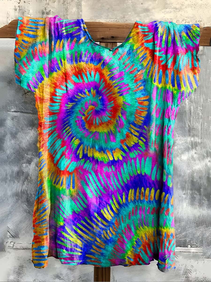 Colorful Tie-Dye Printed Casual Short Sleeve T-Shirt