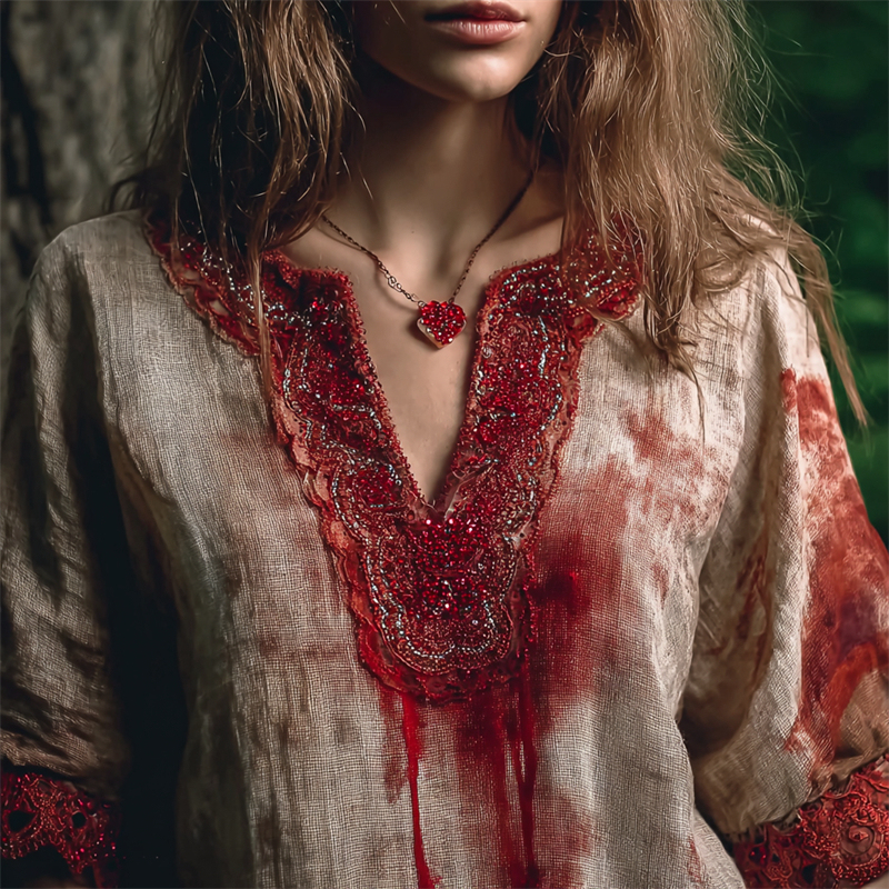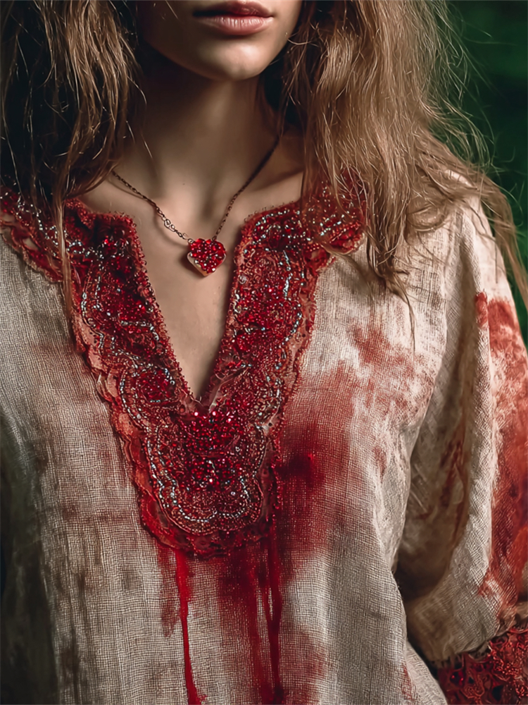 Halloween Bloody Beaded Bloodstains Linen Tunic