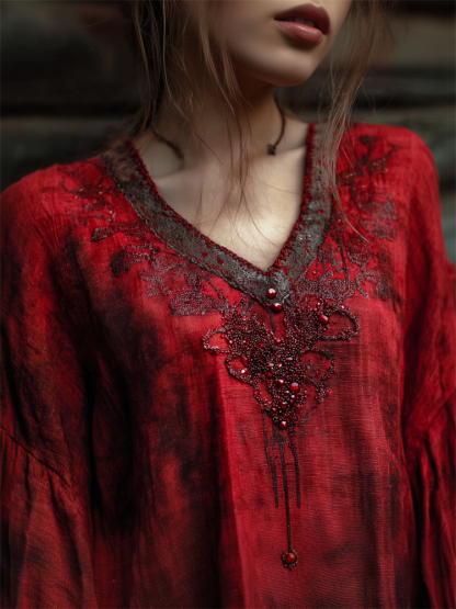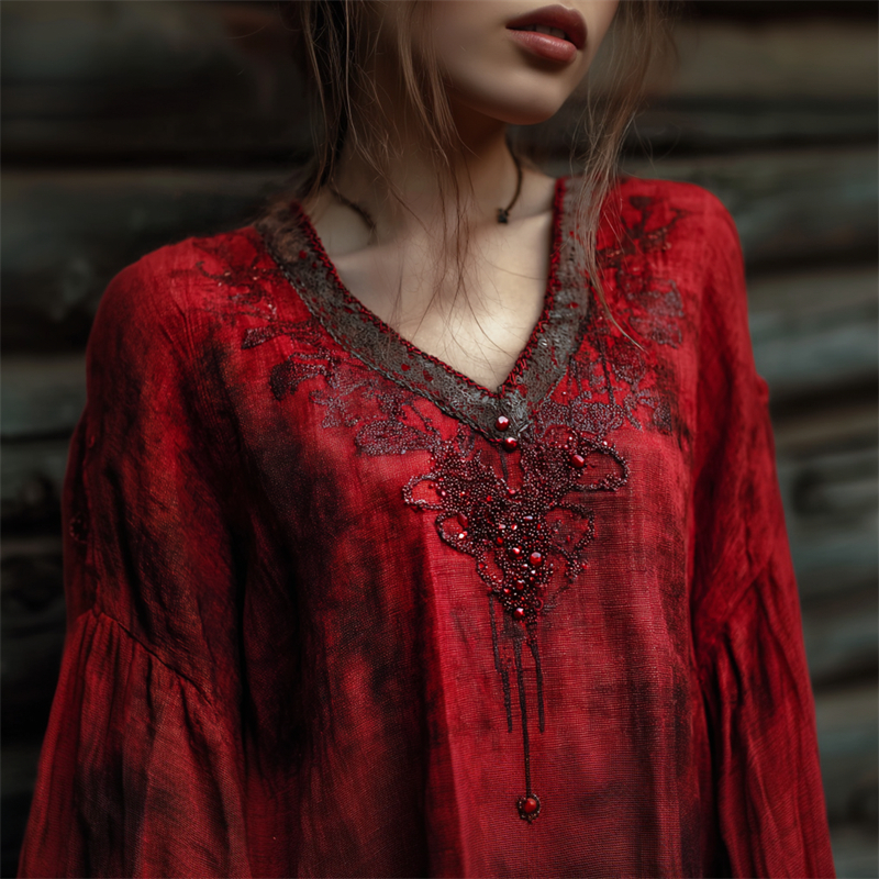 Halloween Vintage Bloody Rhinestone Beaded Linen Tunic