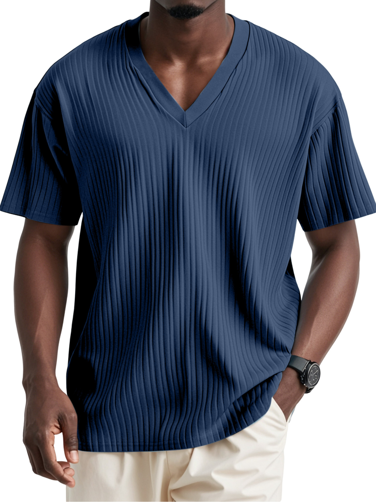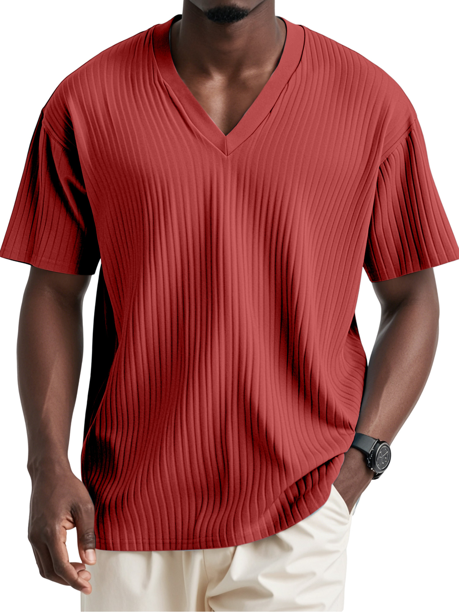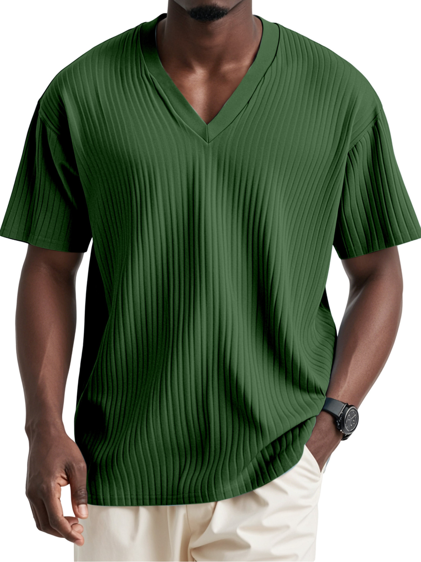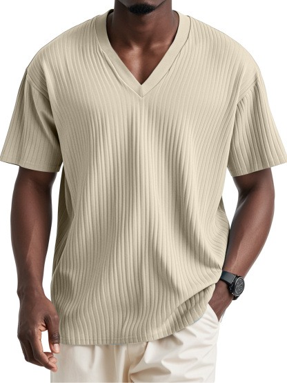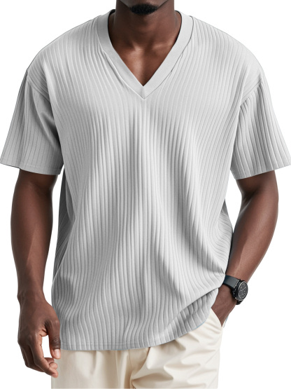 Men's Casual Daily Solid Color Pit V-neck Short-sleeved T-shirt