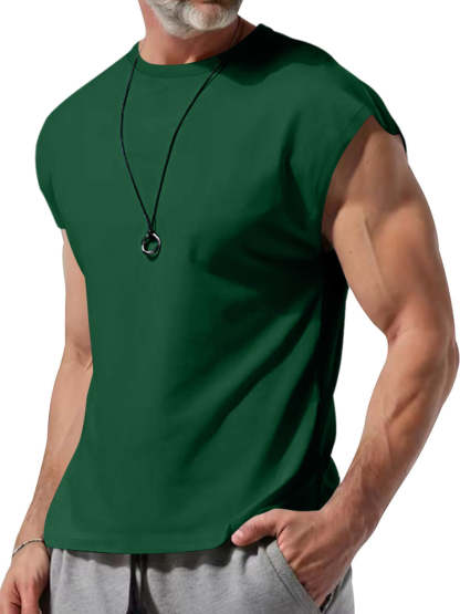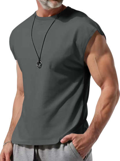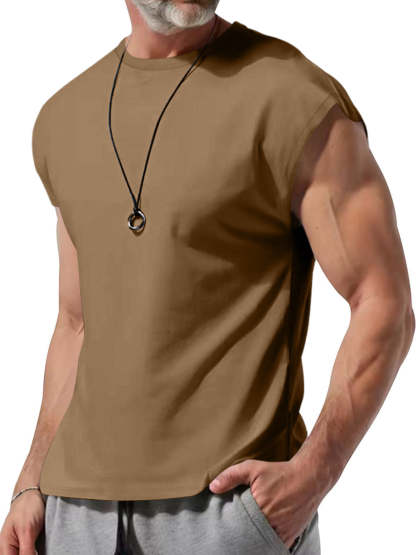 Men's Summer Round Neck Solid Color Sleeveless Tank Top T-Shirt