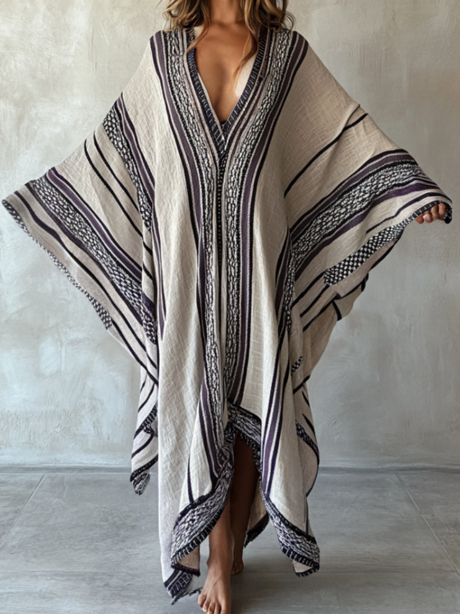 Nomadic Clay Linen V-neck Long Kaftan
