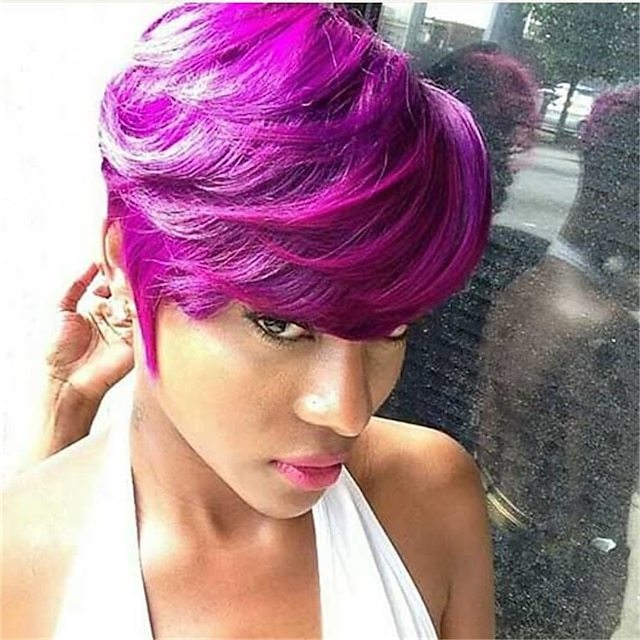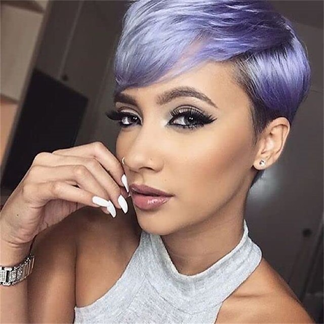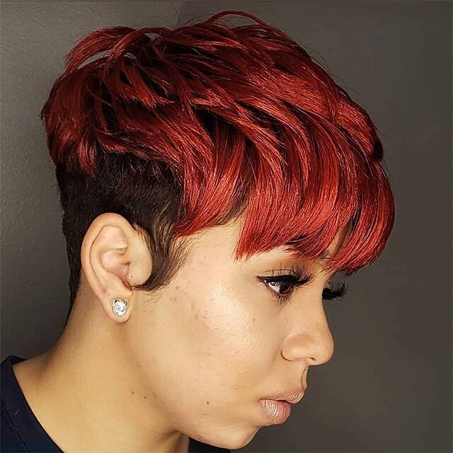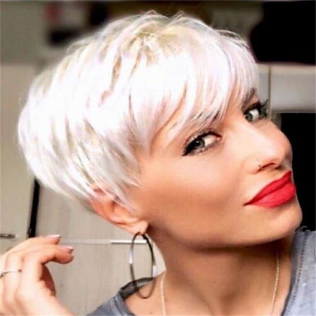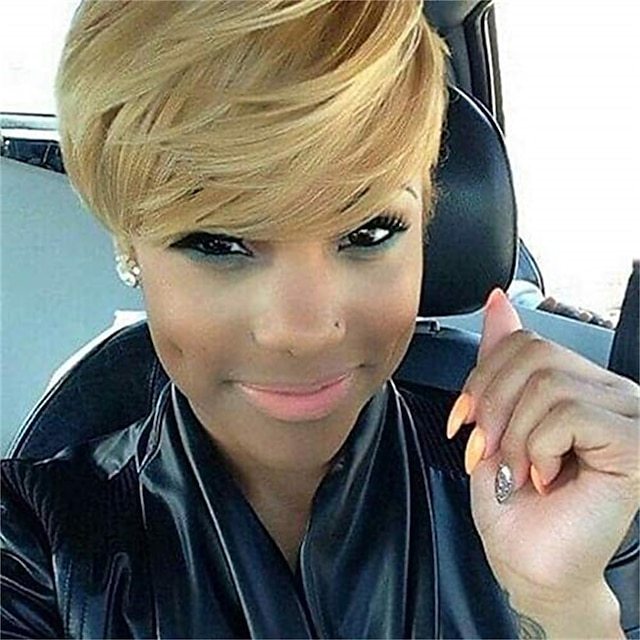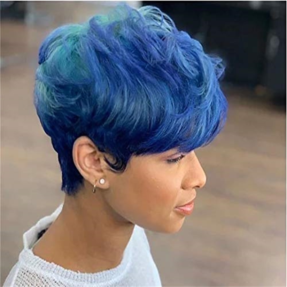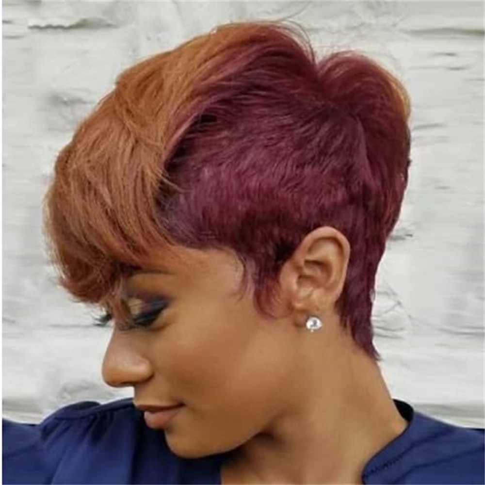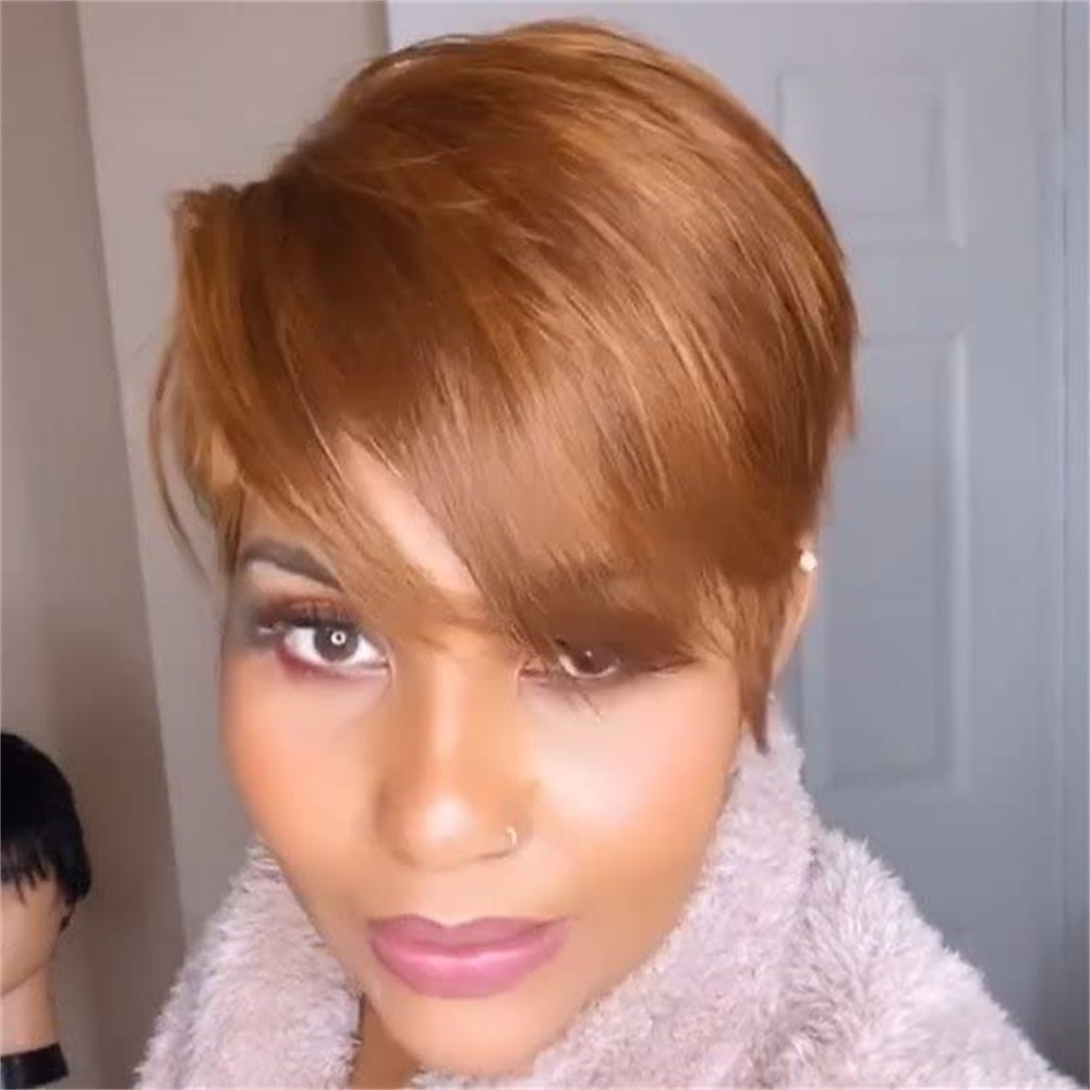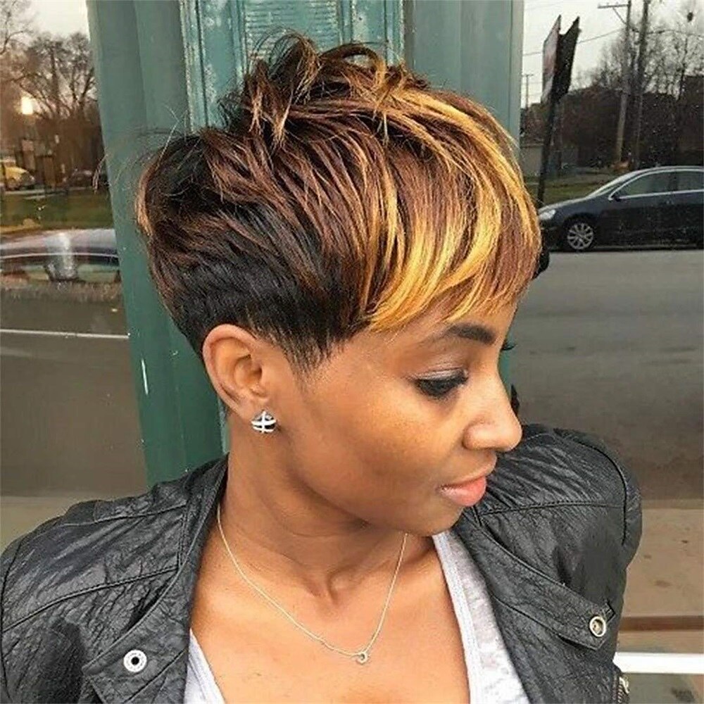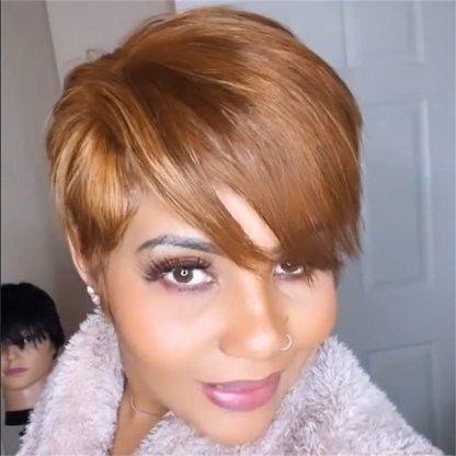Short Pixie Cut Wigs with Mixed Blonde Brown Bangs Synthetic Mixed Brown Wigs