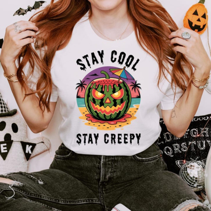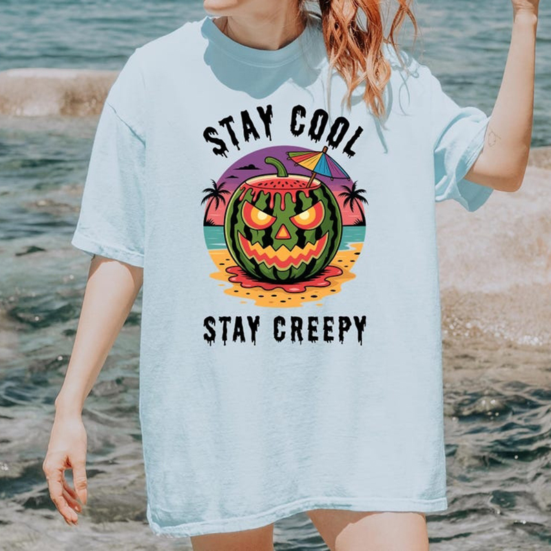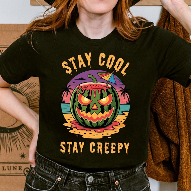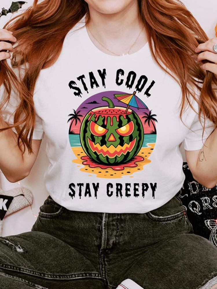 Summerween Fun Watermelon Skull Camping T-shirt