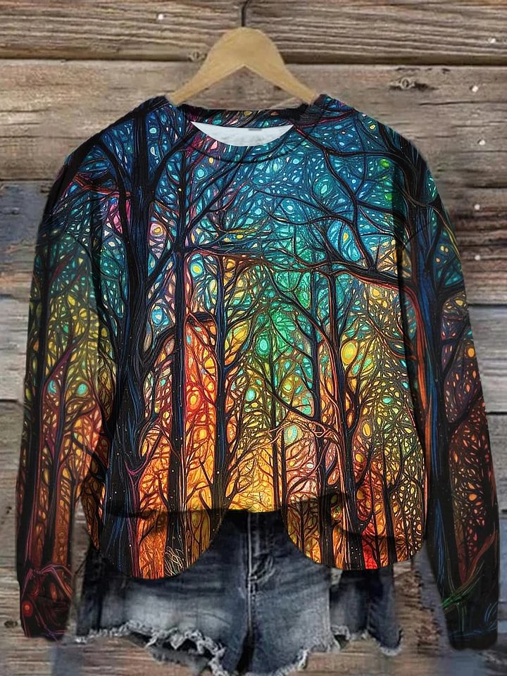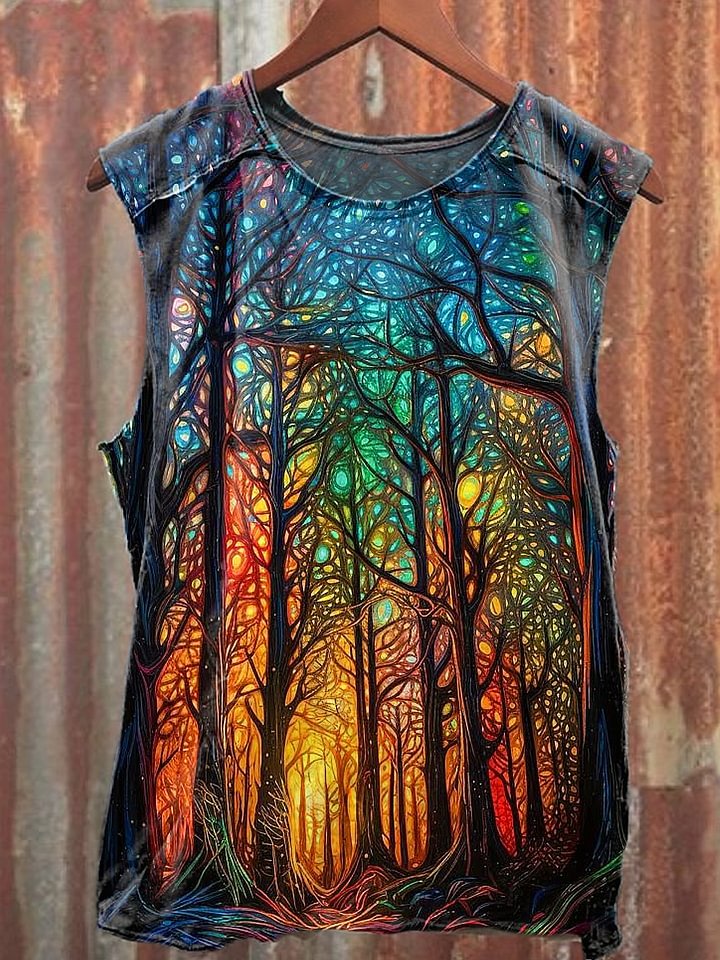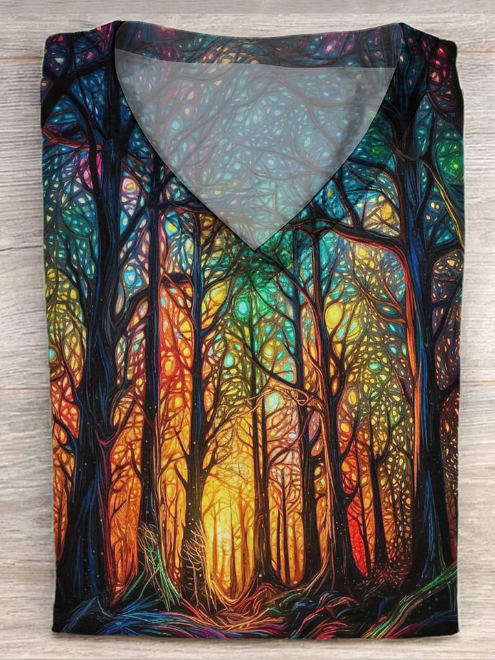 Tree Printed Vintage Fashion Loose Short Sleeve T-Shirt
