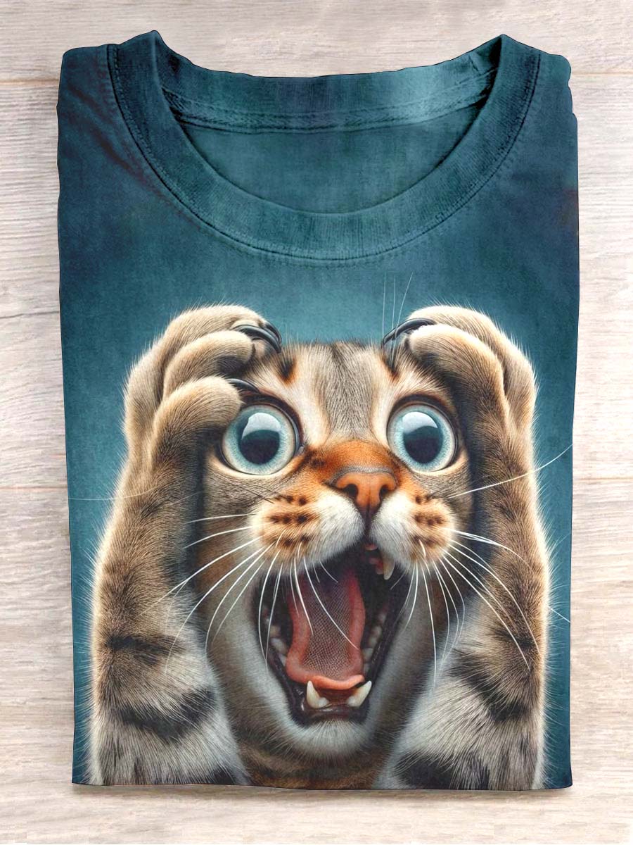 Unisex Collapse Cat Print Short Sleeve T-Shirt