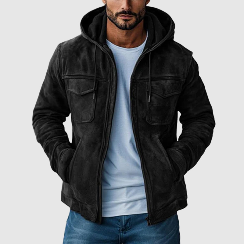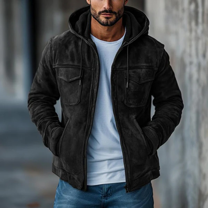 Vintage Drawstring Hoodie Collar Zip-Up Pocket Long Sleeve Jacket