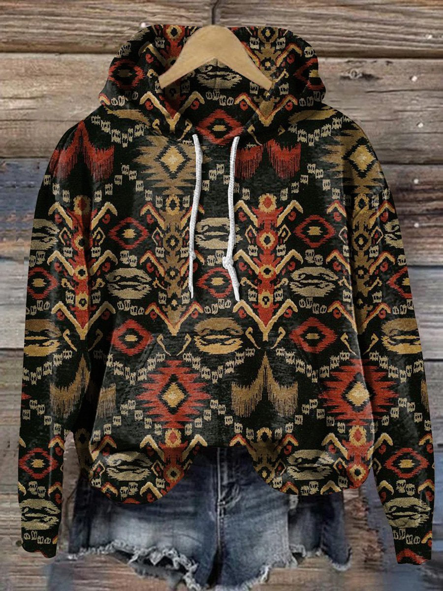 Vintage Ethnic Abstract Geometric Floral Art Print Casual Hoodie Sweatshirt