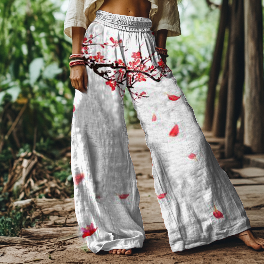 Vintage Floral Art Print Loose Pants