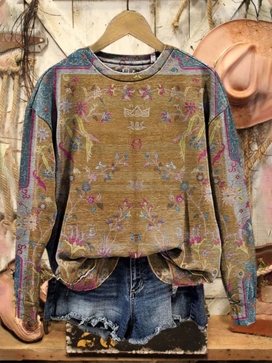 Vintage Floral Print Casual Sweatshirt
