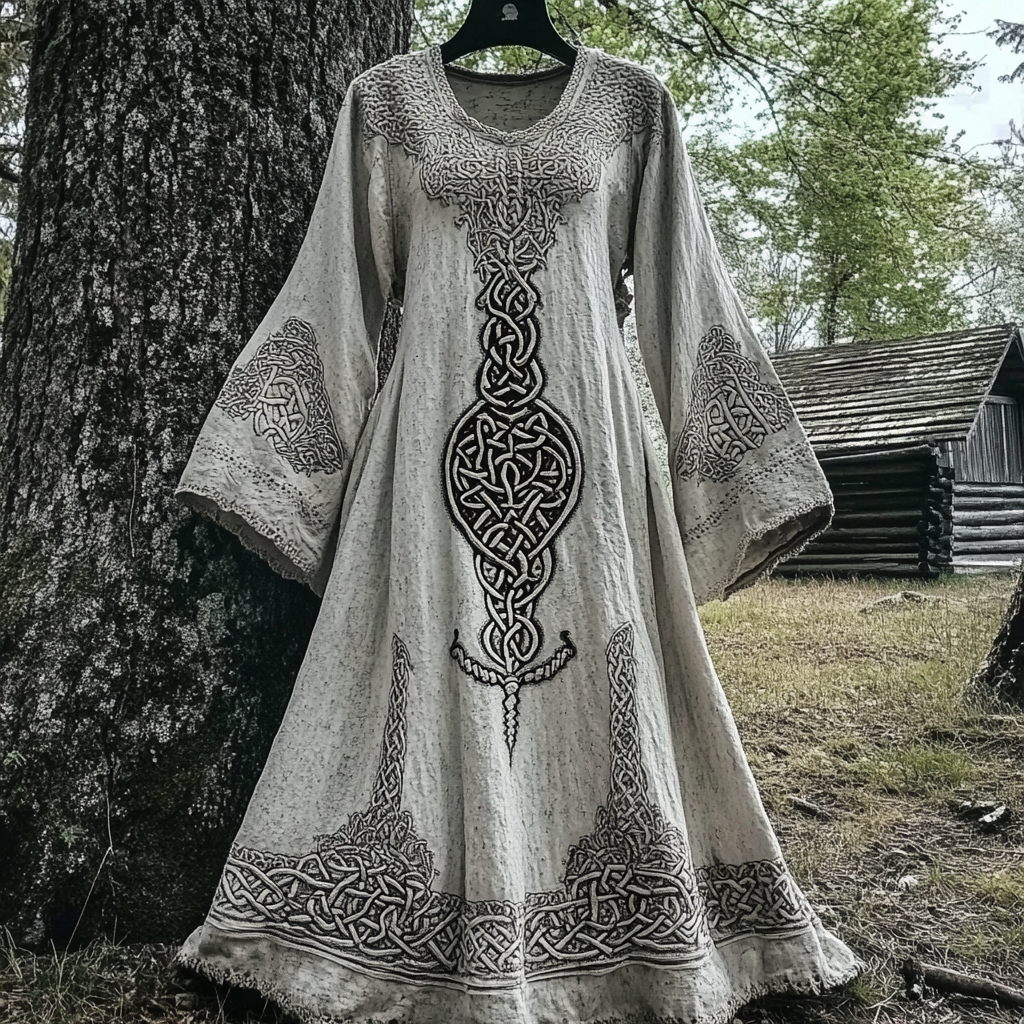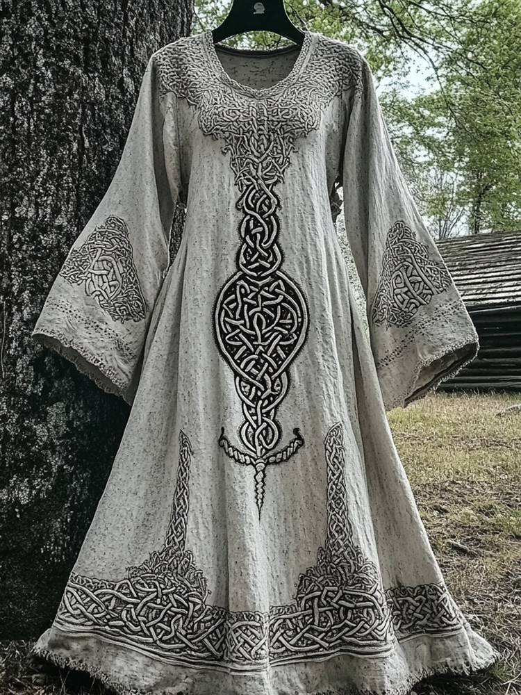 Vintage Viking Tree Of Life Cutout Linen Dress