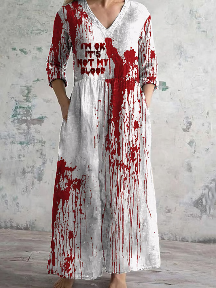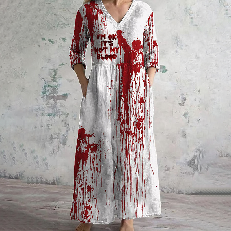 Women's Blood Stains Print Cotton Graphic V-neck Dress