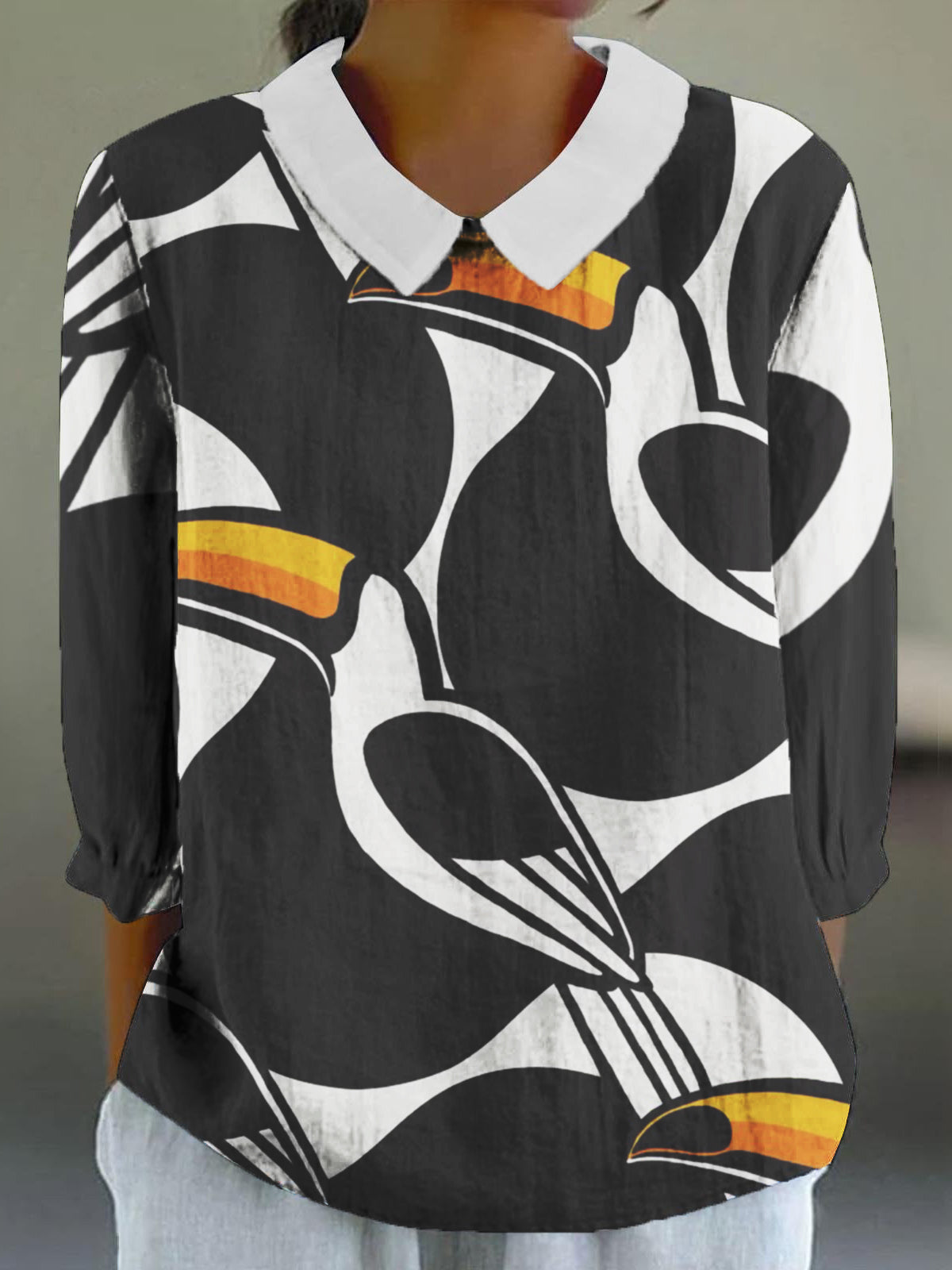 Women's Copatucano Art Print Cotton Linen 3/4 Sleeve Shirt