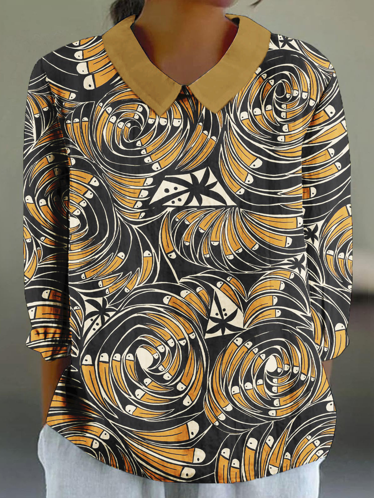 Women's Copatucano Art Printed Cotton Linen 3/4 Sleeve Shirt