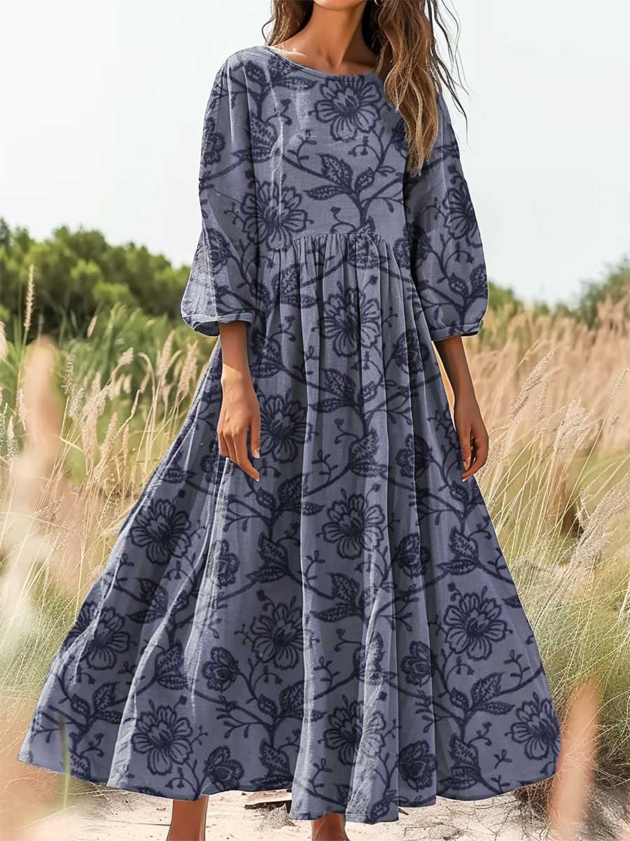 Women's Floral Art Print Cotton Crew Neck Dress
