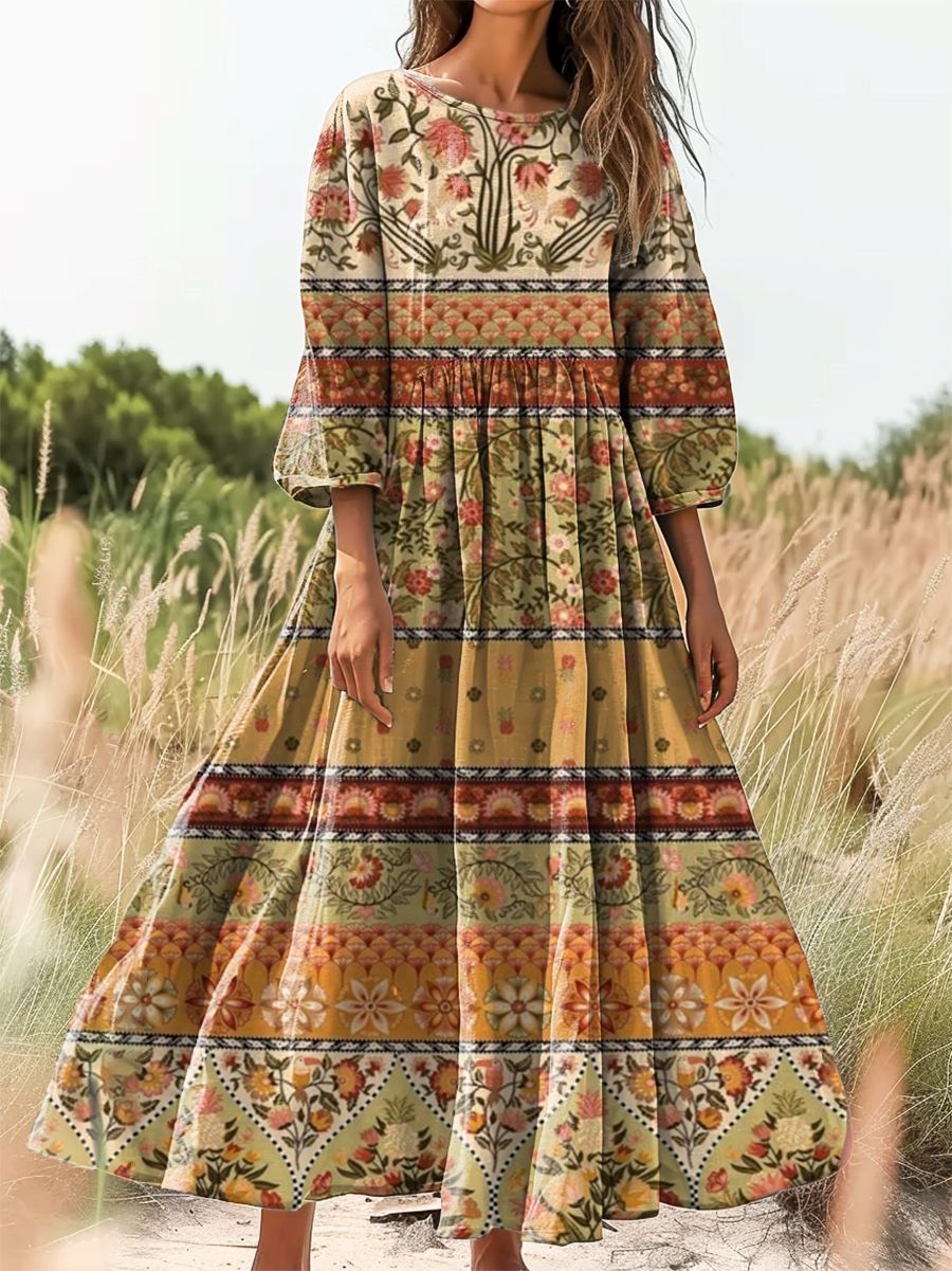 Women's Floral Art Print Cotton Crew Neck Dress