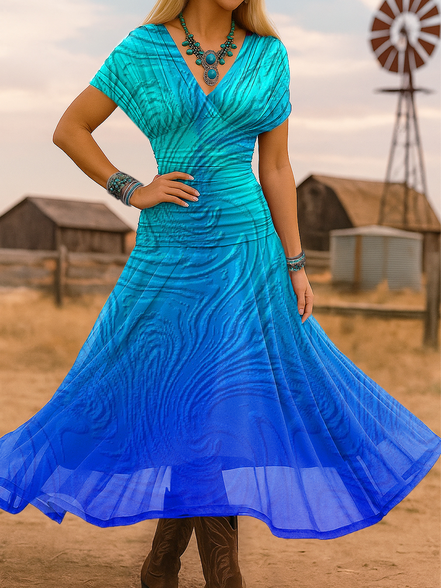 Women's Gradient Print Stretch-mesh Maxi Dress