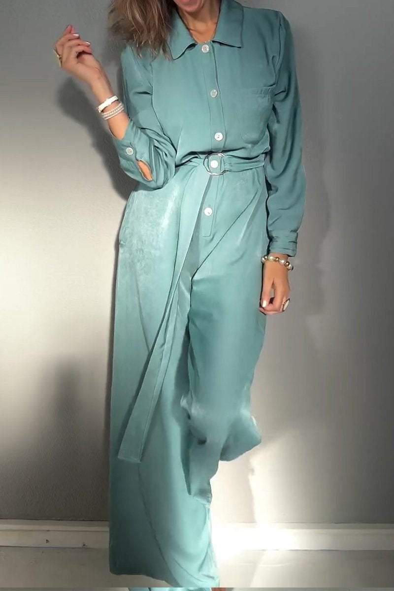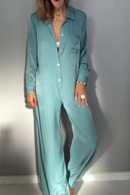 Women's Lapel Long Sleeve Casual Jumpsuit
