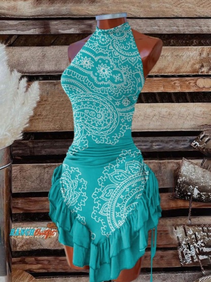 Women's Vintage Art Print Halter Neck Dress