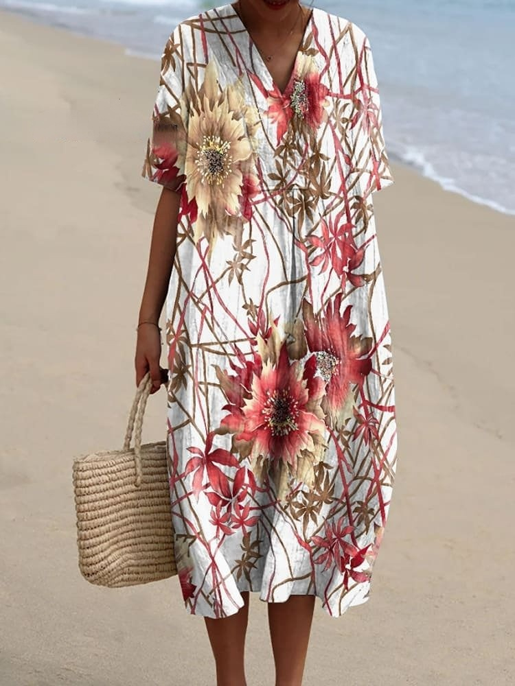 Women's Vintage Flower Art Print Flowy Dress