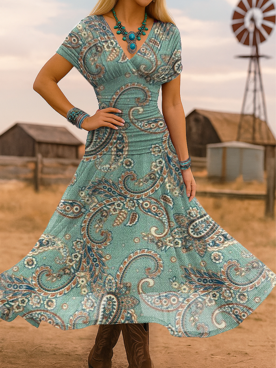 Women's Vintage Paisley Print Stretch-mesh Maxi Dress