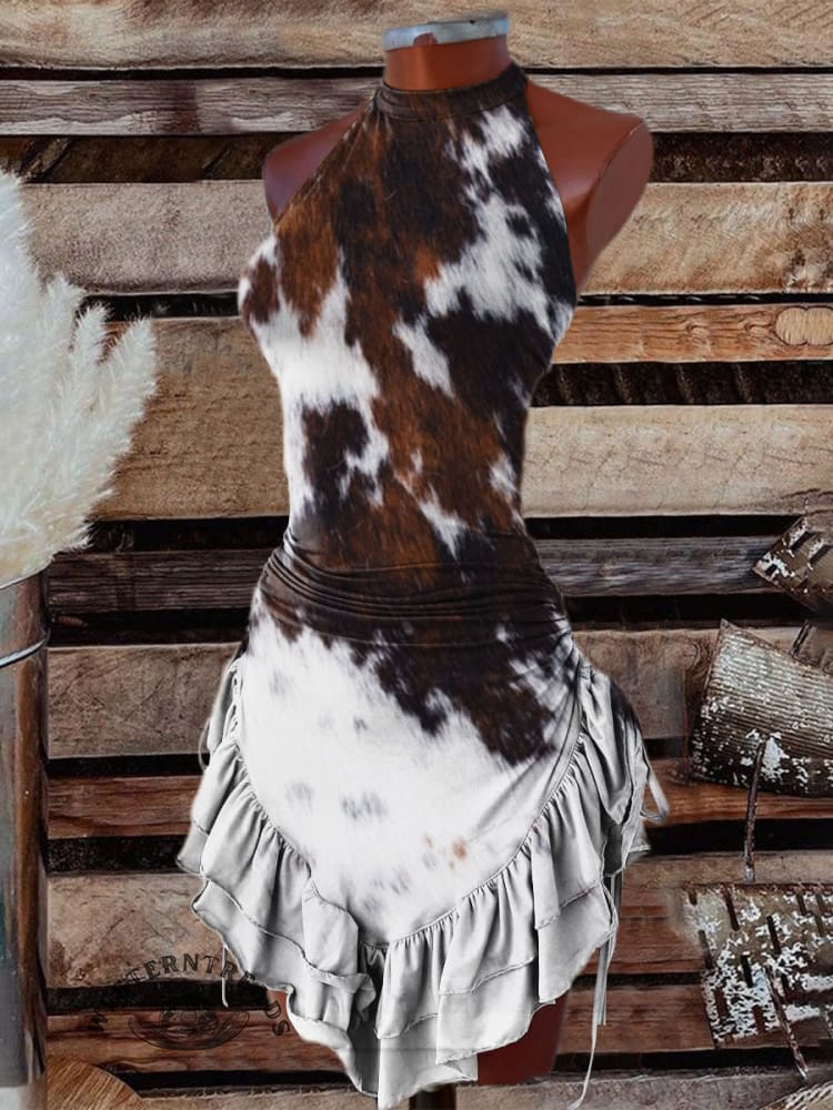 Women's Vintage Print Halter Neck Dress