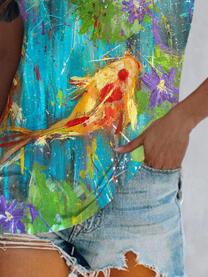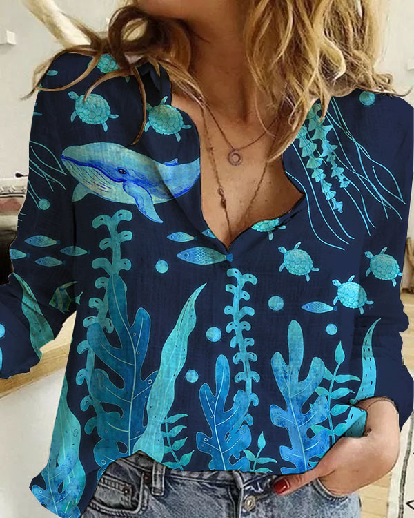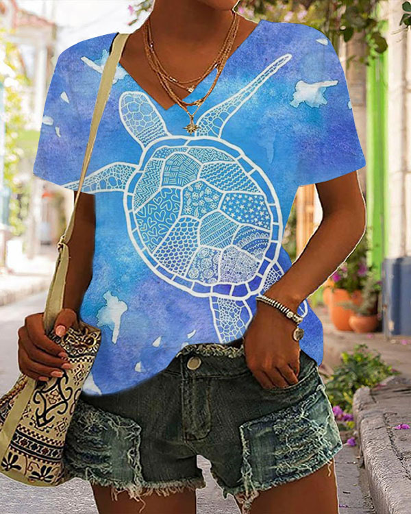 Casual Vacation Sea Turtle V-neck Short-sleeved Top