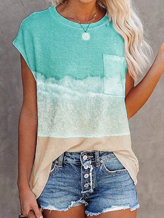 Women's Contrasting Gradient Ocean Print Casual T-Shirt