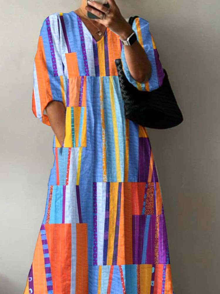 Women's Vintage Geometric Pattern Art Print Cotton Dress