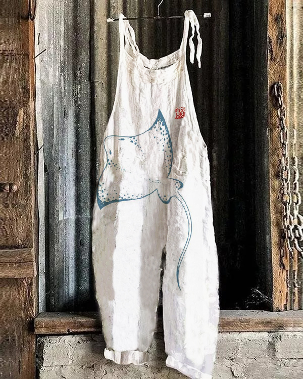 Artistic Manta Ray Printed Casual Jumpsuit