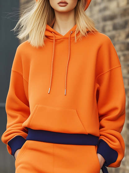 2.Design: Hooded design, long sleeves, pockets, navy trim, and ruffle details.