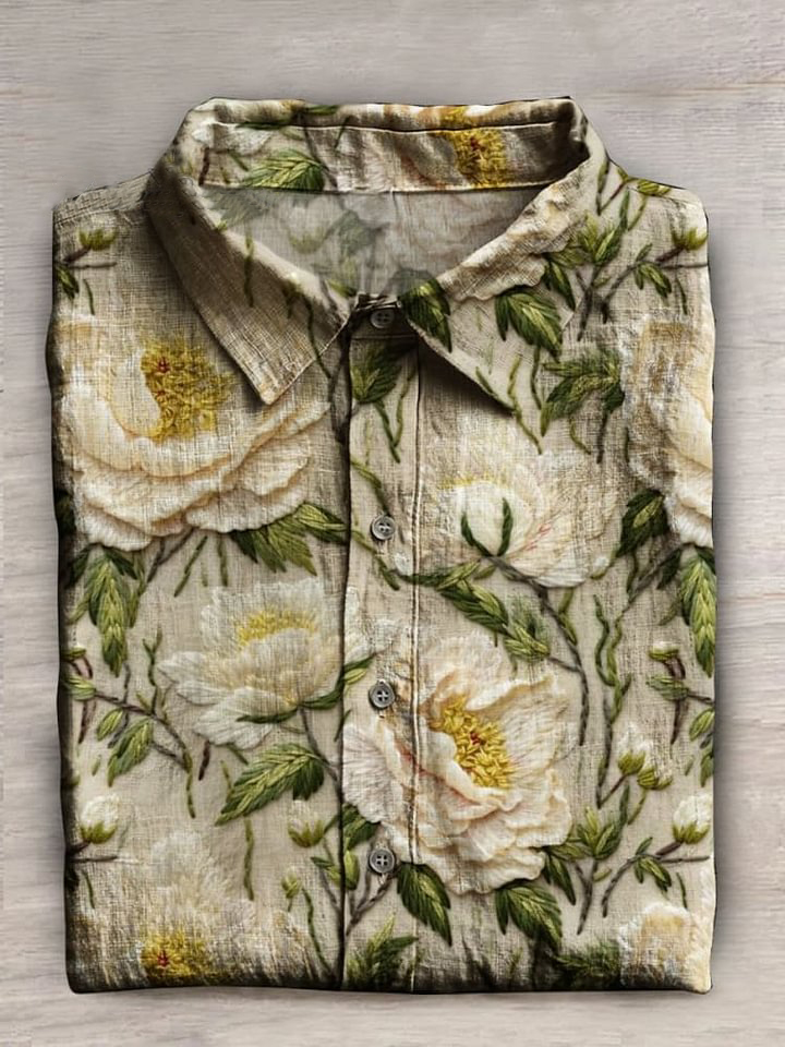 Flowers Print Casual Long Sleeves Cotton Shirt