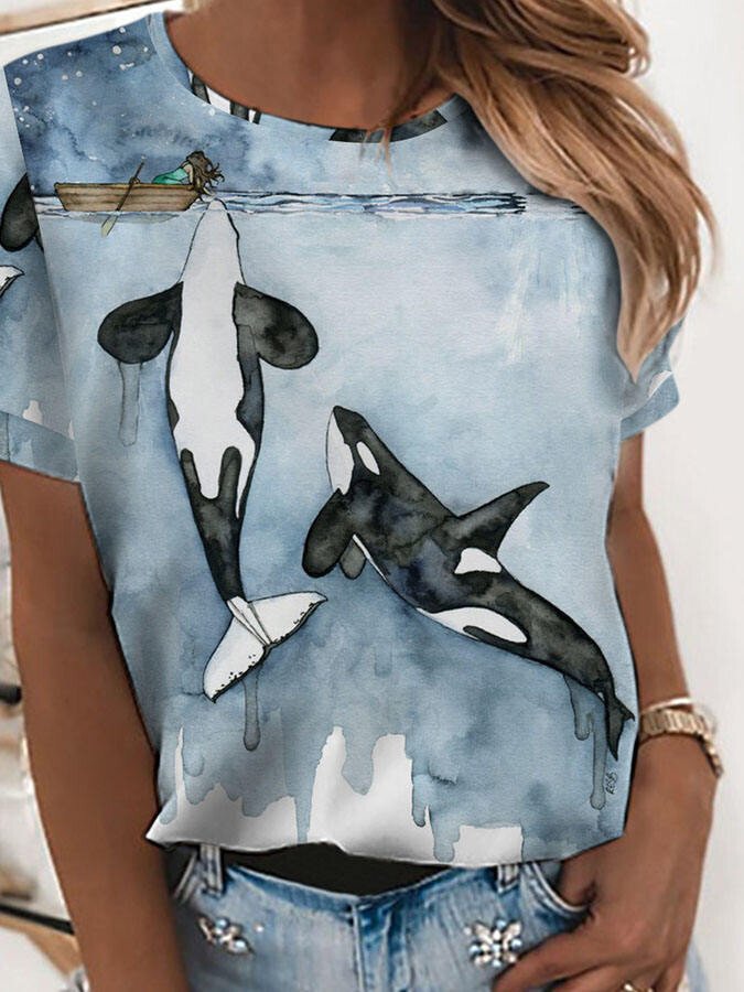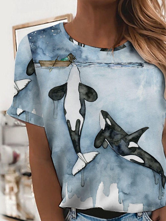 Girls & Whale Print T-Shirt