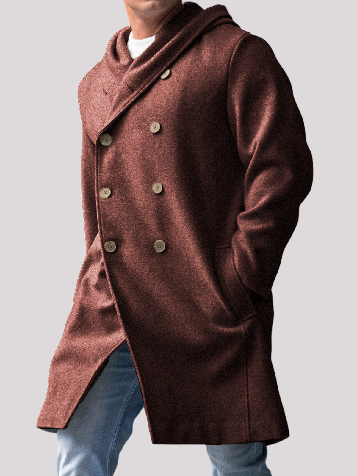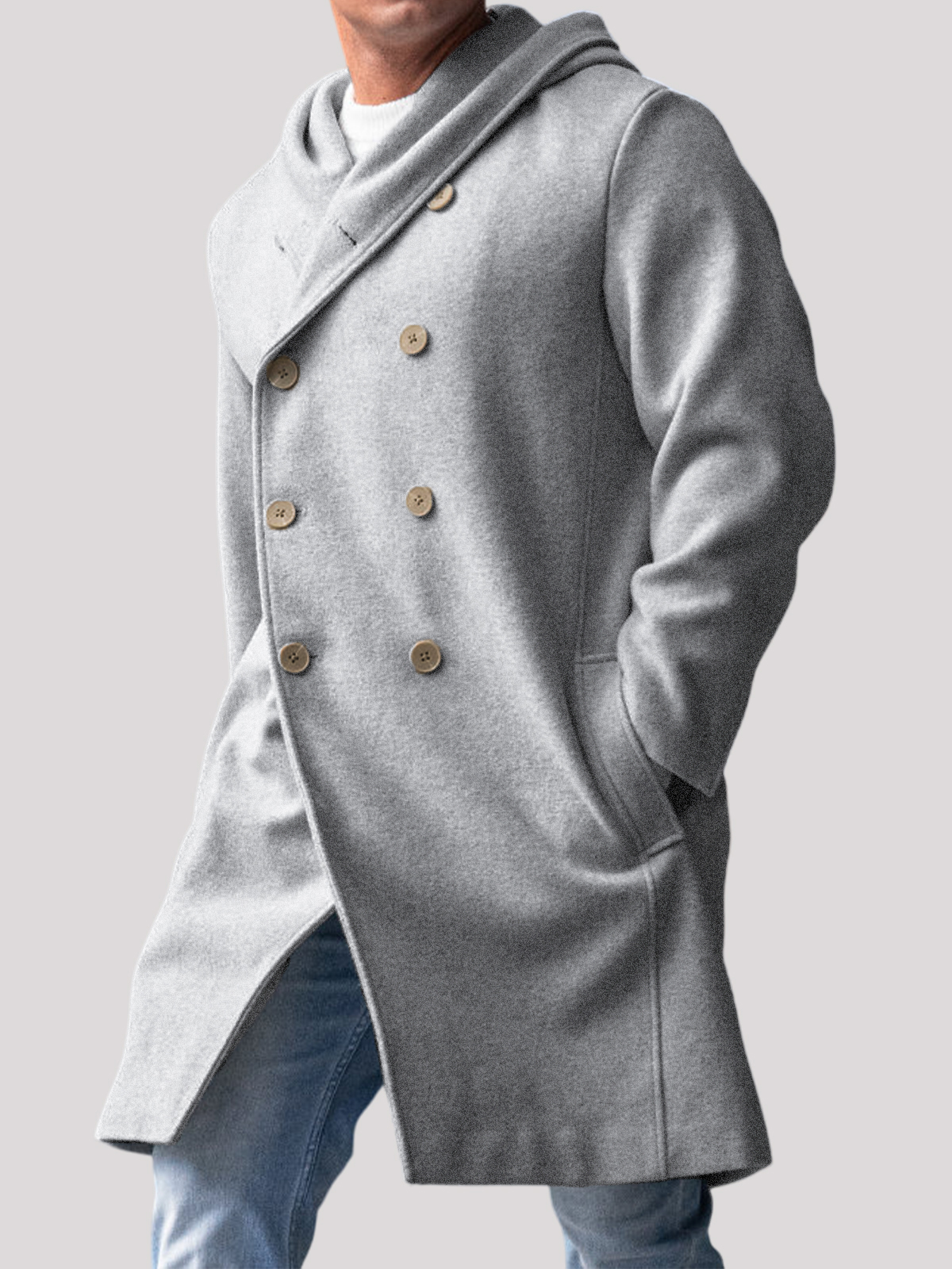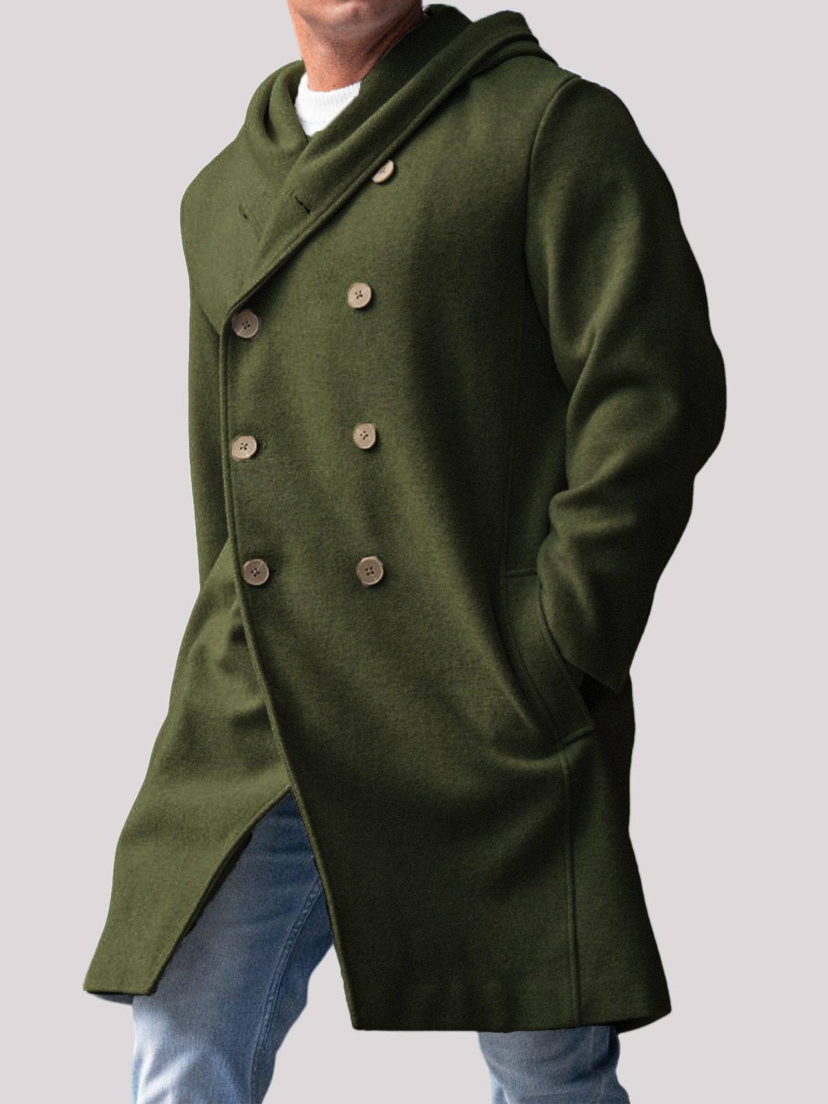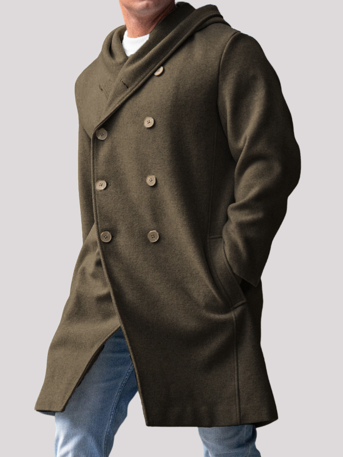 Men's Basic Mid-Length Windbreaker Hooded Casual Solid Color Jacket