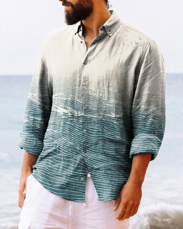 Men's Wave Print Button Long Sleeve Casual Shirt