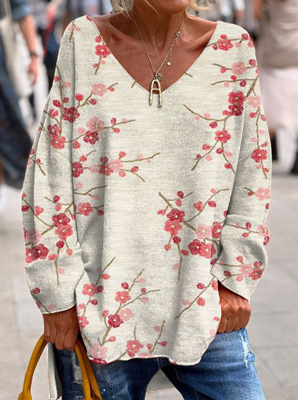 Plum Blossom Embroidery Art Retro Long Sleeve Top