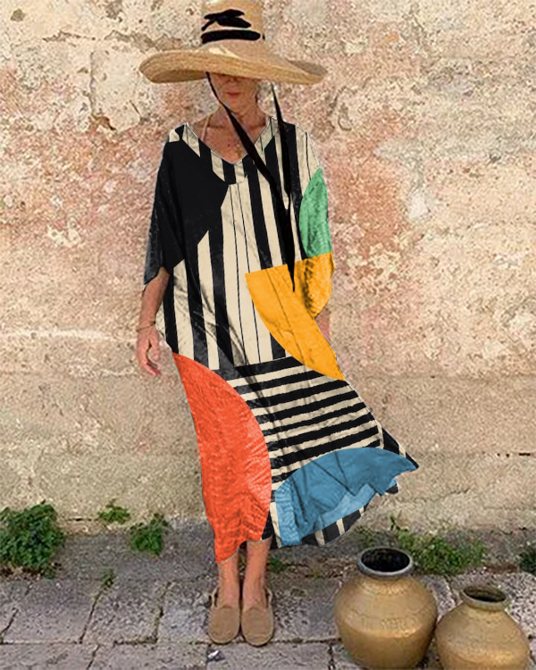 Resort Abstract Art Print Loose Midi Dress