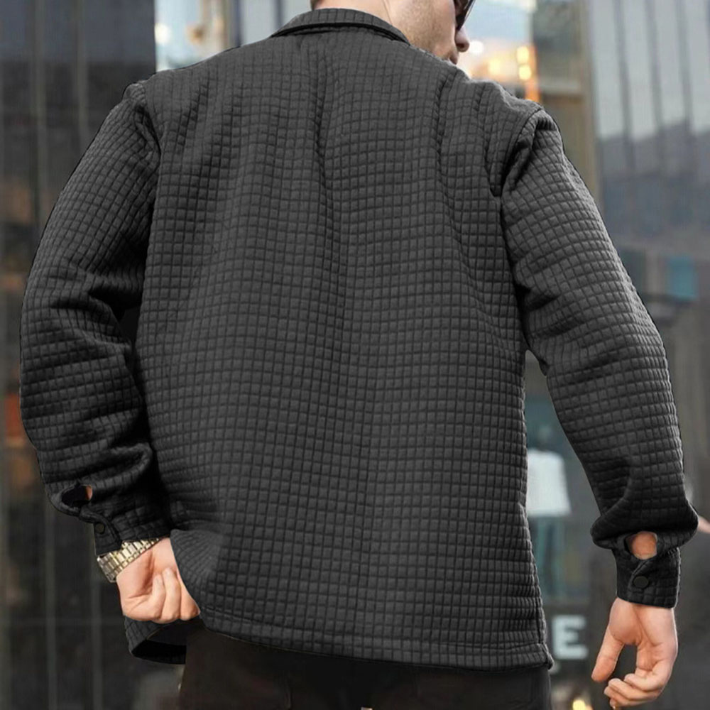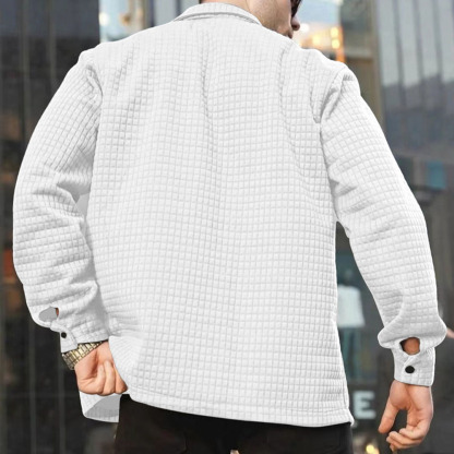Retro Waffle Textured Turndown Collar Button Up Solid Long Sleeve Jacket