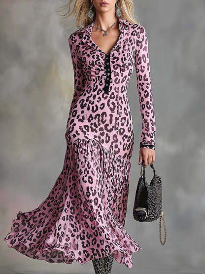 This stylish and sexy pink leopard print chiffon maxi dress is designed to showcase the wild yet elegant side of every woman. Made from premium chiffon, it's lightweight and breathable, making it ideal for casual outings or evening events. The vibrant pink leopard print adds a bold touch to your fashionable look, ensuring you're the center of attention.