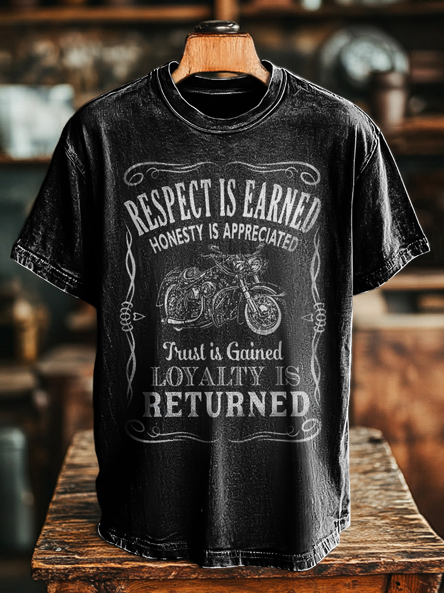 Unisex Retro Biker Letter Print Casual Loose T-Shirt