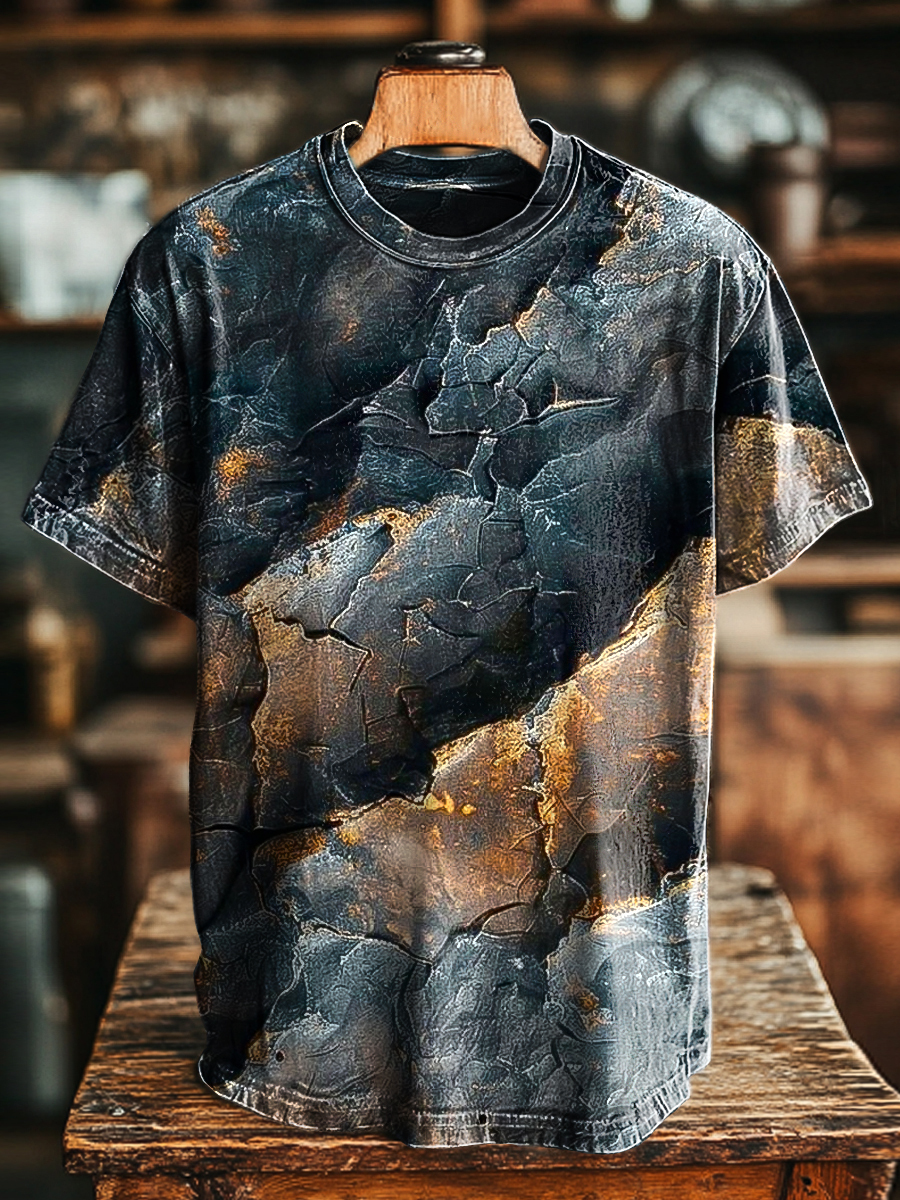 Unisex Vintage Abstract Crackle Aged Printed Casual Loose T-Shirt