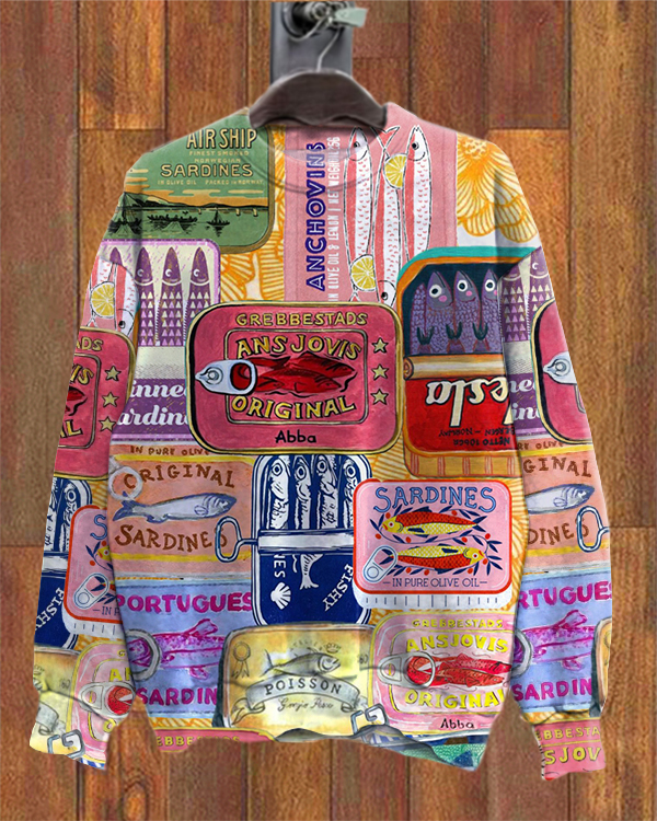 Unisex Vintage Seafood Sardines Fish Can Loose Sweatshirt