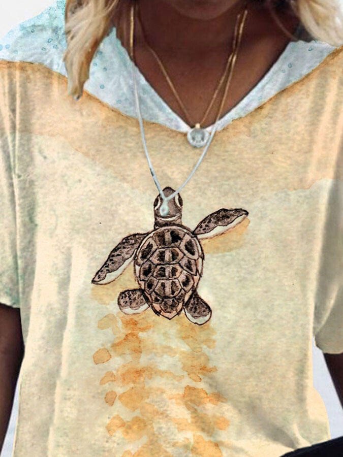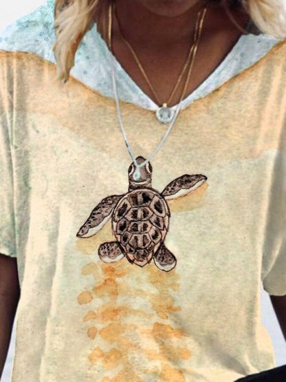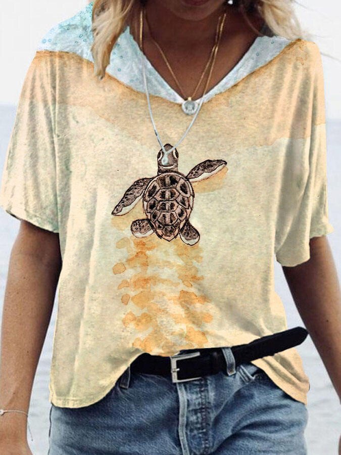 V-Neck Turtle Print T-Shirt