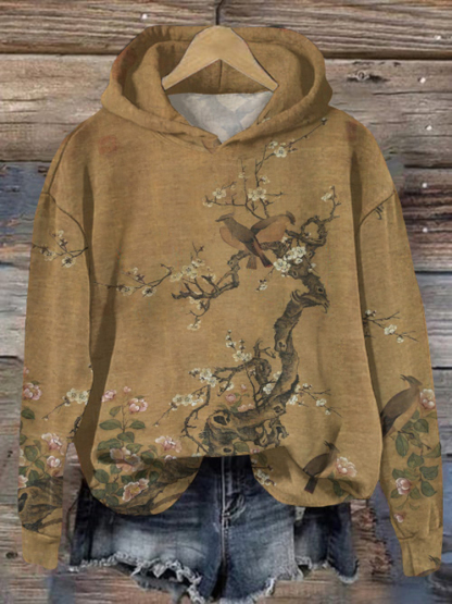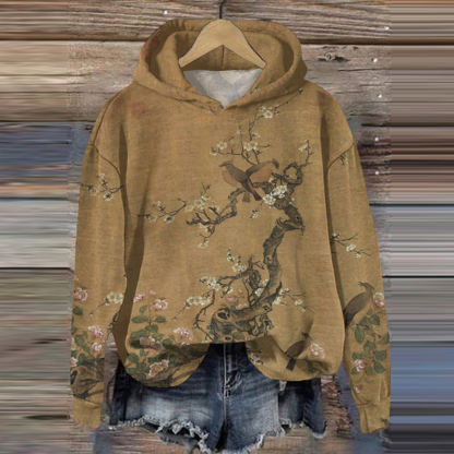 Vintage Floral Print Long Sleeve Casual Hoodie