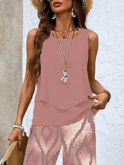 Women's Geometric Printing Two-Piece Set Daily Sleeveless Casual Summer Top With Pants Matching Set